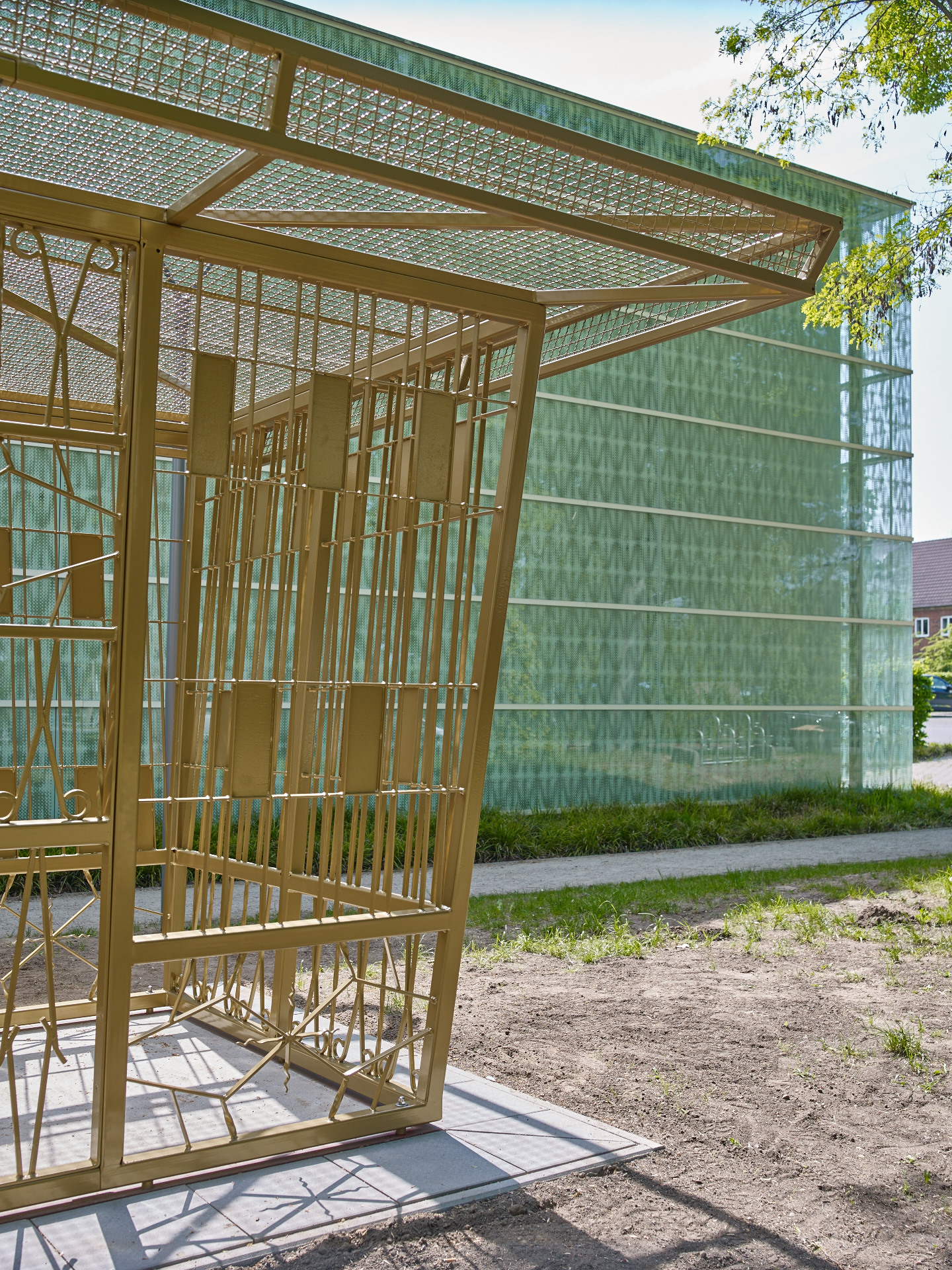 Mit ihrer Installation setzt sich die Künstlerin Andrea Pichl mit der Geschichte der Kunsthalle Rostock auseinander. Einige der durch die aktuelle Sanierung des Hauses ausrangierten Metallteile wie Fenster-, Depotgitter und Türen finden sich in diesem Kunstwerk wieder. Trotz ihrer neuen Bestimmung bleiben die ursprünglichen Fragmente mit ihrer Vergangenheit durch die unmittelbare Nähe zum Ensemble der Kunsthalle weiterhin verbunden. Andrea Pichl wählte als Grundform die Gestalt eines Zeitungskioskes des Postzeitungsvertriebes (PZV) der DDR. Diese Kioske waren bis Anfang der 1990er Jahre weit verbreitet und sind heutzutage aus dem ostdeutschen Stadtbild nahezu vollständig verschwunden. Exemplarisch steht die Installation Kiosk – Fragmente einer Zeit für die Haltung von Andrea Pichl in Bezug auf die zahlreichen Bauten der sogenannten Ostmoderne, die es aufgrund ihrer baulichen und historischen Qualität unbedingt zu bewahren gilt. Die jüngst vollendete Sanierung der Kunsthalle Rostock ist ein gelungenes Beispiel für den Erhalt und damit für die Wertschätzung der modernen Architektur aus DDR-Zeiten.