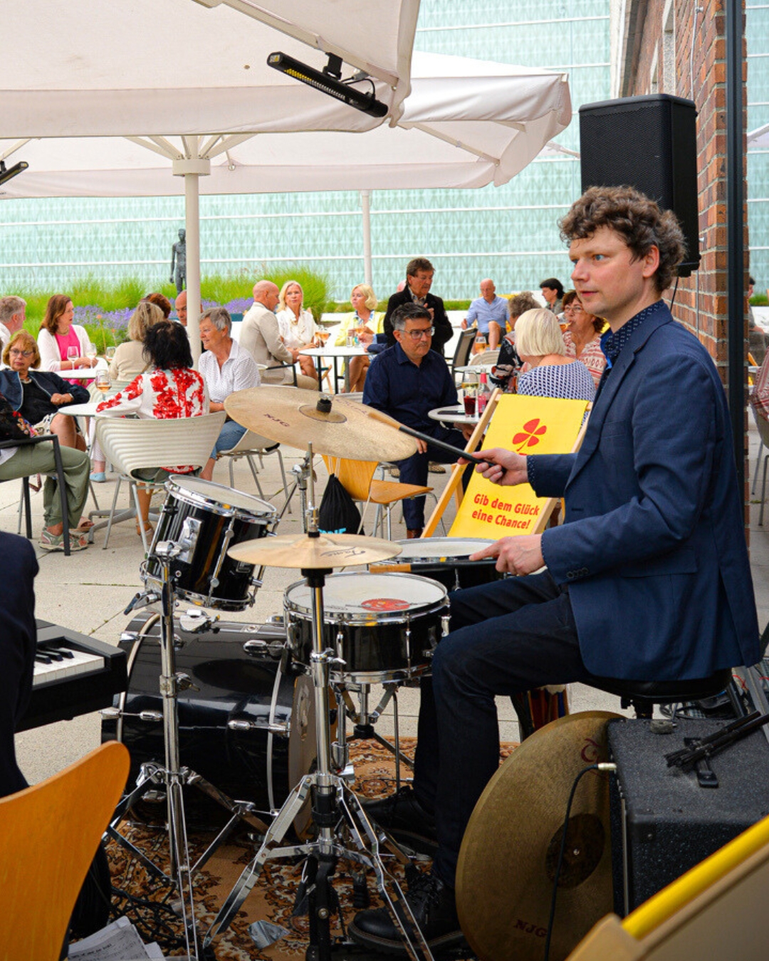 Zum Sommerfest der Freunde der Kunsthalle Rostock kamen zahlreiche Mitglieder*innen zusammen, um gemeinsam einen besonderen Nachmittag und Abend zu verbringen. Im Schaudepot wurde das kommende Jahresprogramm der Kunsthalle Rostock vorgestellt – ein Ausblick auf zahlreiche Ausstellungen und Projekte, die die Kunstfreunde in Rostock erwartet. Zudem gab der Freundeskreis einen transparenten Einblick in die Finanzlage und Aktivitäten des vergangenen Jahres. Im Anschluss klang der Abend bei Livemusik, Gegrilltem und kühlen Getränken auf der Terrasse im Gräsergarten aus. In entspannter Atmosphäre wurden gute Gespräche geführt und herzlich gelacht.