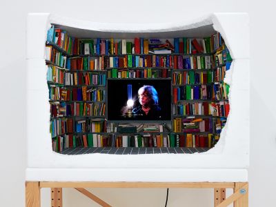 Auch mit der Vergänglichkeit des eigenen Schaffens befasst sich der Künstler. Allein der Nachwelt überlässt er es nicht, seine Bilder zu bewerten und schon gar keinem Nachlassverwalter. Thomas Hartmann findet, nicht jedes Bild muss erhalten bleiben. Erst mit Abstand lässt sich beurteilen, welche Werke Bestand haben sollen. Ein Lagerregal, überbordend gefüllt mit 300 zerstörten Bildern, wird zum Monument der Selbstermächtigung. Schreinartig türmt er die Relikte zu einem neuen Kunstwerk auf. Selektion und Zerstörung sind Teil des künstlerischen Prozesses. Regale sind dabei bedeutsame Werkzeuge des Ordnens und Bewahrens – Metapher für das Fortbestehen im Angesicht der Vergänglichkeit.