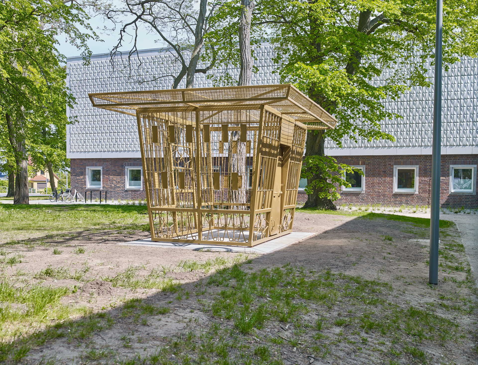 Mit ihrer Installation setzt sich die Künstlerin Andrea Pichl mit der Geschichte der Kunsthalle Rostock auseinander. Einige der durch die aktuelle Sanierung des Hauses ausrangierten Metallteile wie Fenster-, Depotgitter und Türen finden sich in diesem Kunstwerk wieder. Trotz ihrer neuen Bestimmung bleiben die ursprünglichen Fragmente mit ihrer Vergangenheit durch die unmittelbare Nähe zum Ensemble der Kunsthalle weiterhin verbunden. Andrea Pichl wählte als Grundform die Gestalt eines Zeitungskioskes des Postzeitungsvertriebes (PZV) der DDR. Diese Kioske waren bis Anfang der 1990er Jahre weit verbreitet und sind heutzutage aus dem ostdeutschen Stadtbild nahezu vollständig verschwunden. Exemplarisch steht die Installation Kiosk – Fragmente einer Zeit für die Haltung von Andrea Pichl in Bezug auf die zahlreichen Bauten der sogenannten Ostmoderne, die es aufgrund ihrer baulichen und historischen Qualität unbedingt zu bewahren gilt. Die jüngst vollendete Sanierung der Kunsthalle Rostock ist ein gelungenes Beispiel für den Erhalt und damit für die Wertschätzung der modernen Architektur aus DDR-Zeiten.