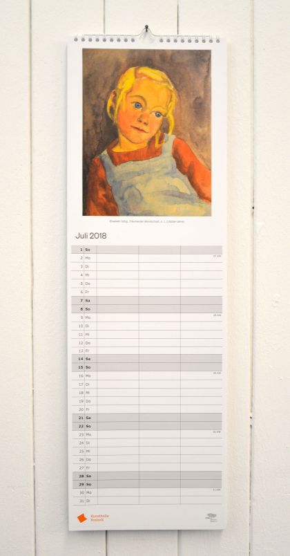Der Wandkalender erscheint anlässlich der monatlich wechselnden Sammlungsausstellungen im Café der Kunsthalle Rostock.