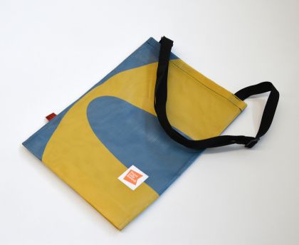 Die Taschen sind aus den Ausstellungsbannern der Kunstahalle Rostock gefertigt. Jede Tasche hat ein individuelles Motiv und ist einzigartig.